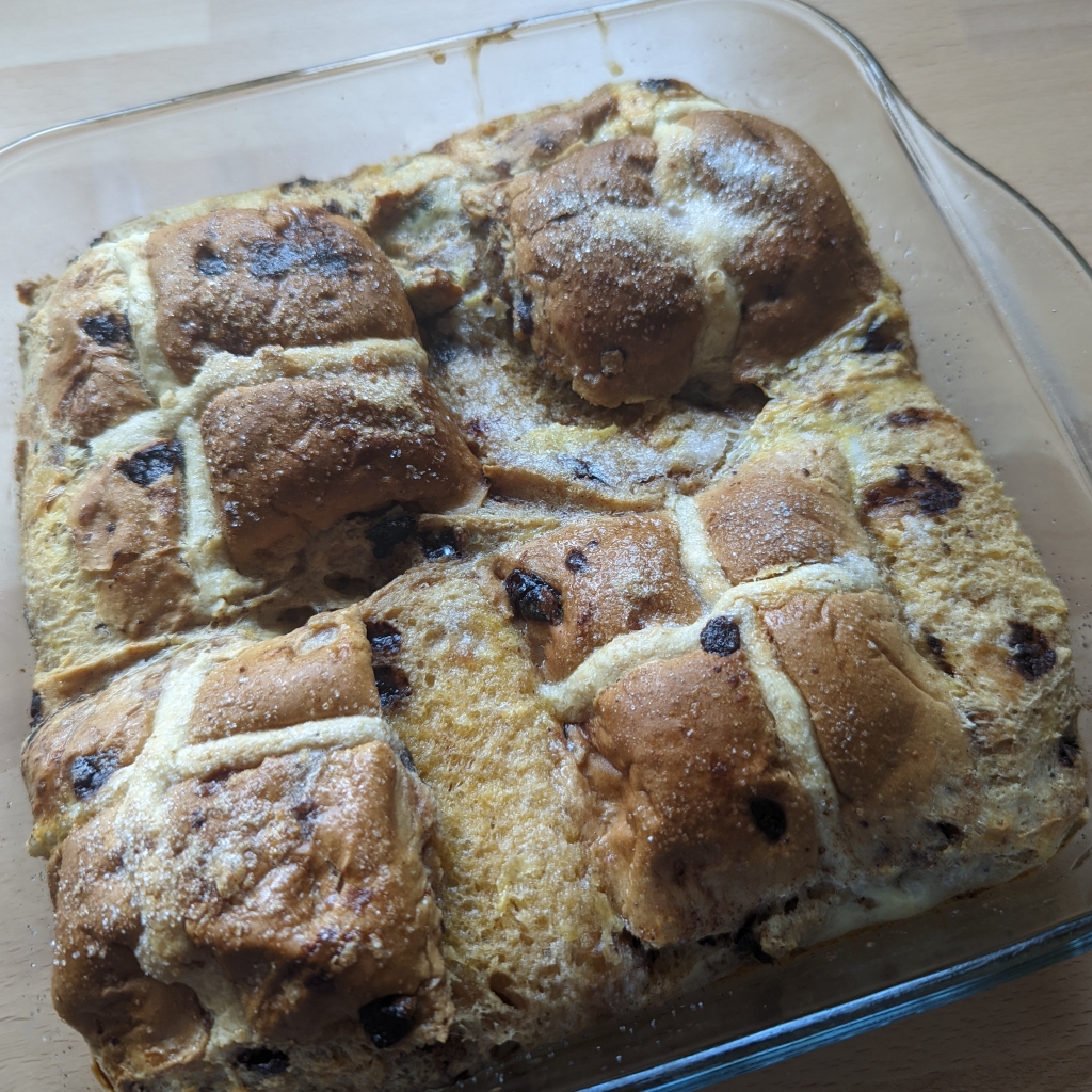 One of my favourite ways to use up stale bread is to whip up a bread and butter pudding, especially as it's one of my Dad's favourites! However, now I will definitely be making it with hot cross buns as well! To make this version, replace the bread in the same proportions with the equal weight in halved hot cross buns. If you don't have sufficient hot cross buns to do this, top up the weight with regular bread. I used some lovely sticky toffee hot cross buns in this, which added an additional depth of flavour. My Dad loved this twist on a classic after a Sunday roast with some custard!!
