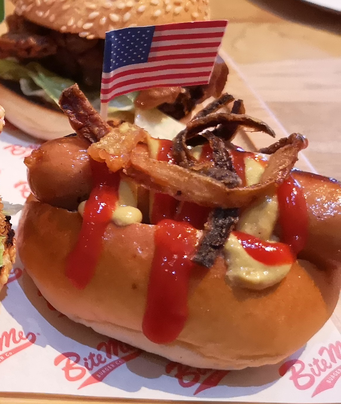 To accompany the burgers there are regular or sweet potato fries (which were not soggy!), soft drinks and they serve a range of milkshakes that also sound delicious! There is also a sneaky hotdog on the menu, which is adorably mini, but a perfect tiny version of a true American tasty hotdog!