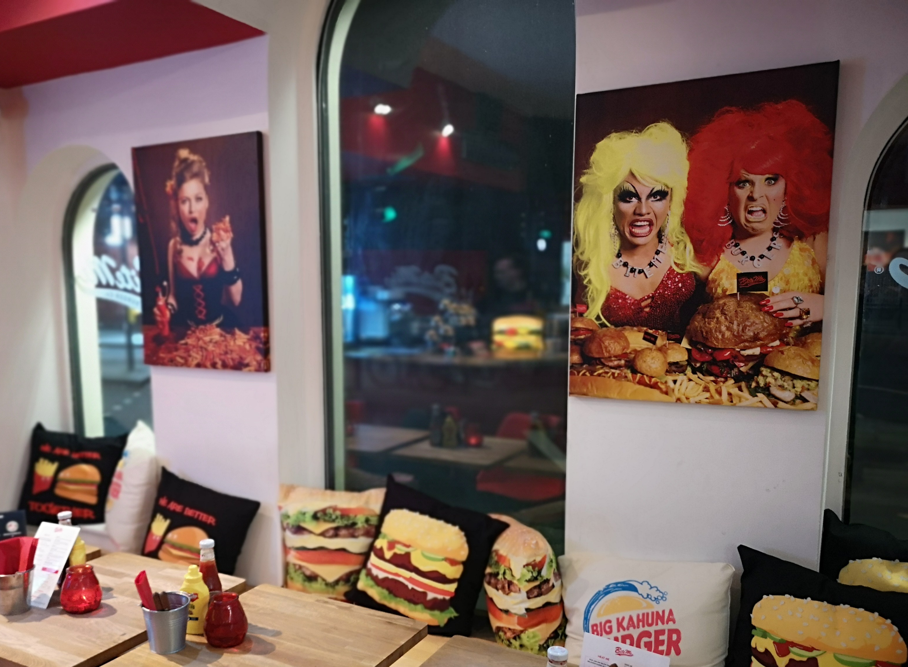 The first thing I noticed (from a distance even!) is the really fun decor in and across the restaurant. Burger themed cushions & extremely cool graphic posters were everywhere! I especially loved that some actively endorsed that it's okay to be a messy eater - I definitely make a mess when eating a burger!