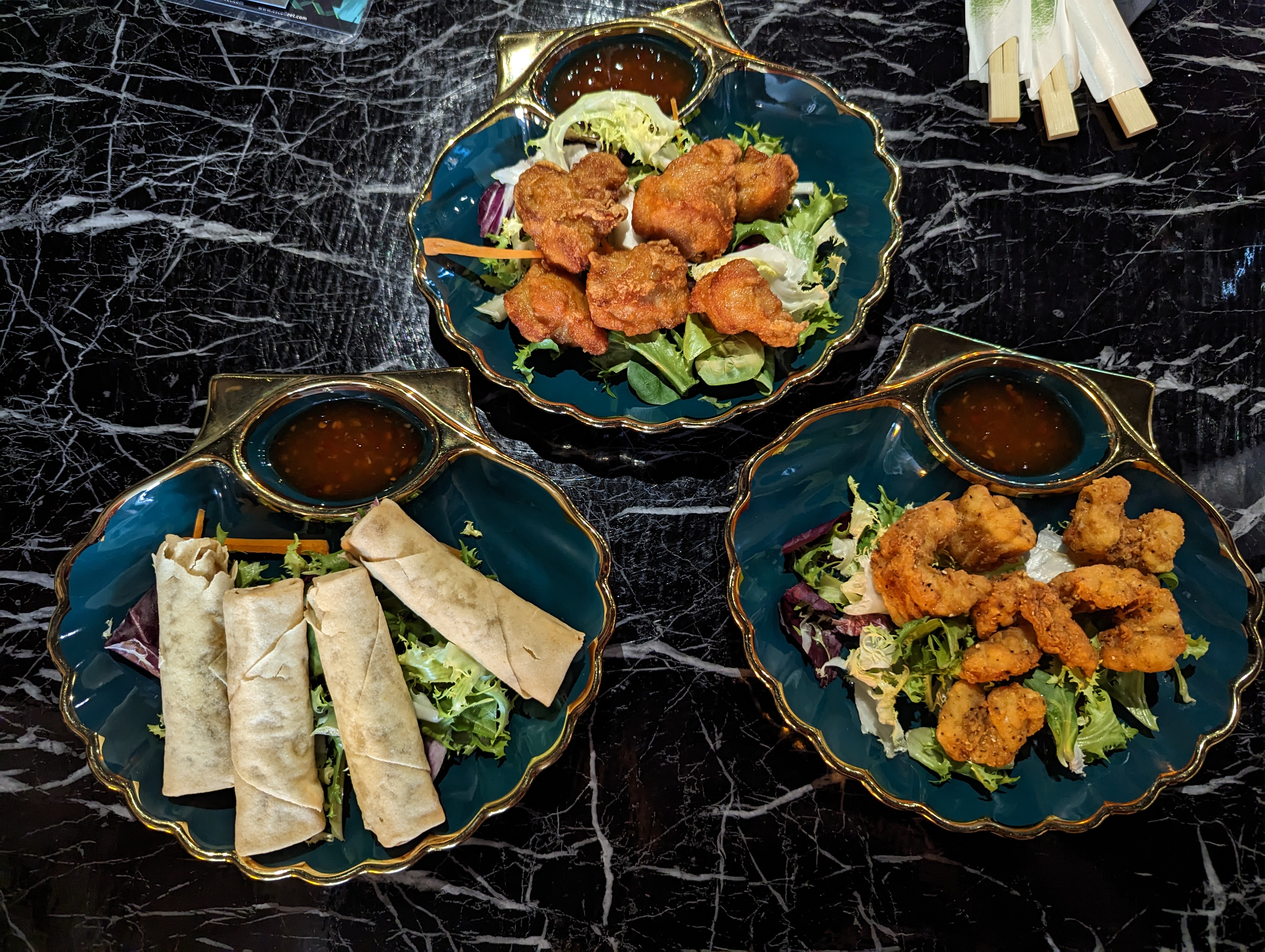 For our first course we had a huge array of options to choose from as you can pick any appetizer, hosomaki, hand roll, nigiri and gunkan sushi dishes from the menu! I opted for salt & chilli squid to start, whilst friends went for vegetable spring rolls and chicken karage. The plating was stunning (as always!) and the squid was delicious; crunchy, spiced and tender within.