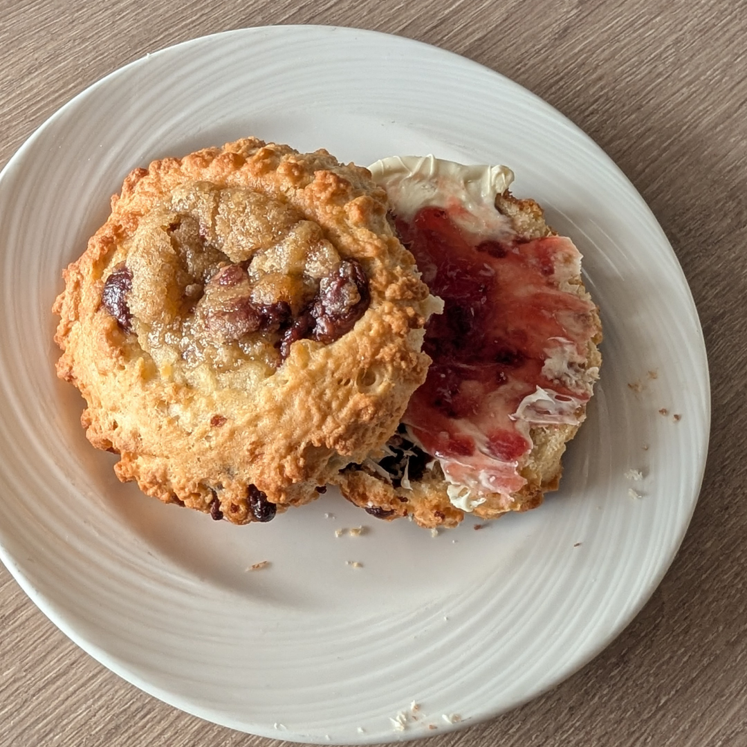 The scones were anything but traditional, in the best way—cookie dough scones loaded with chocolate chunks, still warm and deliciously gooey. Served with clotted cream, jam and peanut butter, they felt indulgent and a little bit different, which worked so well with the overall theme.