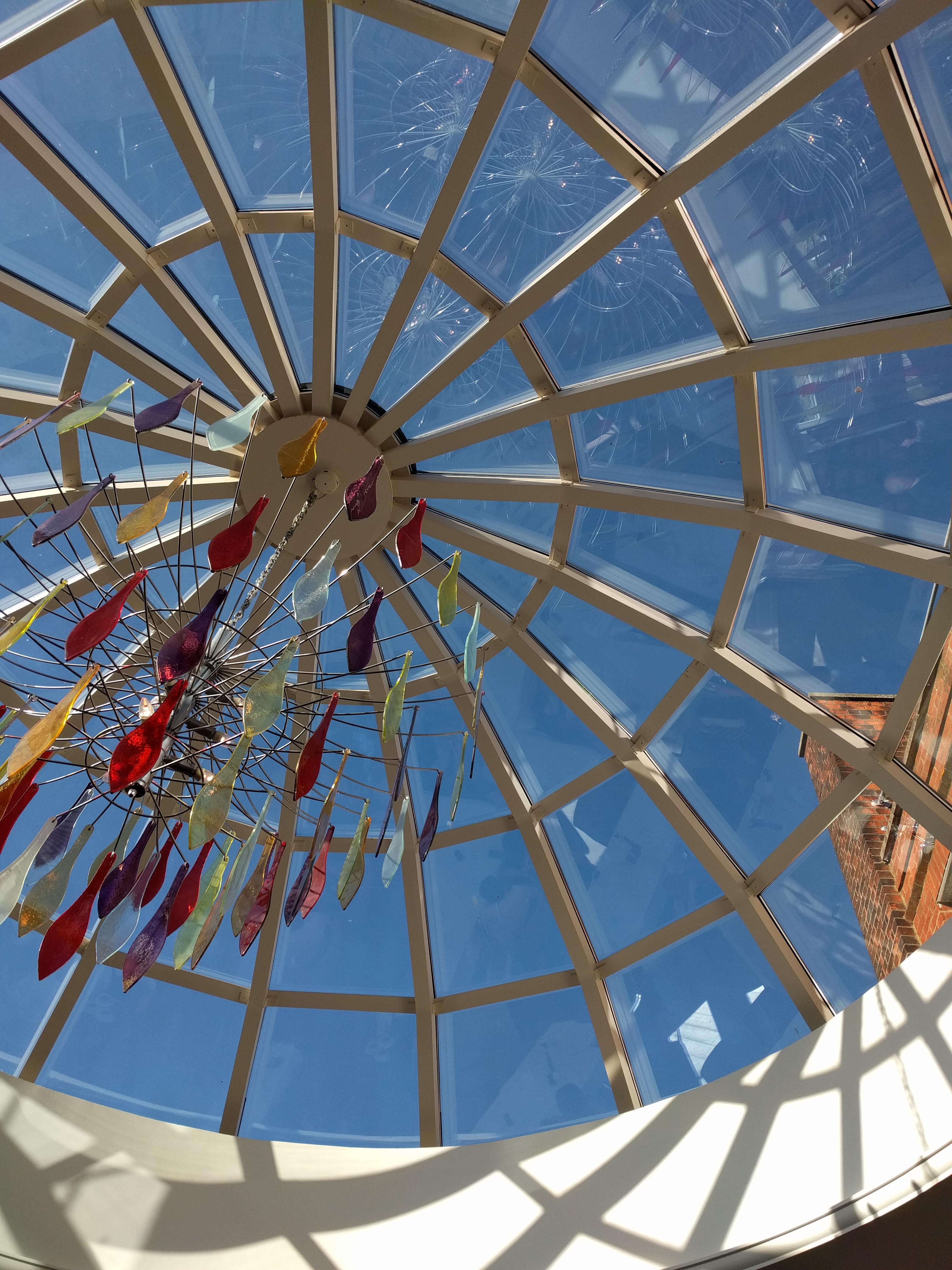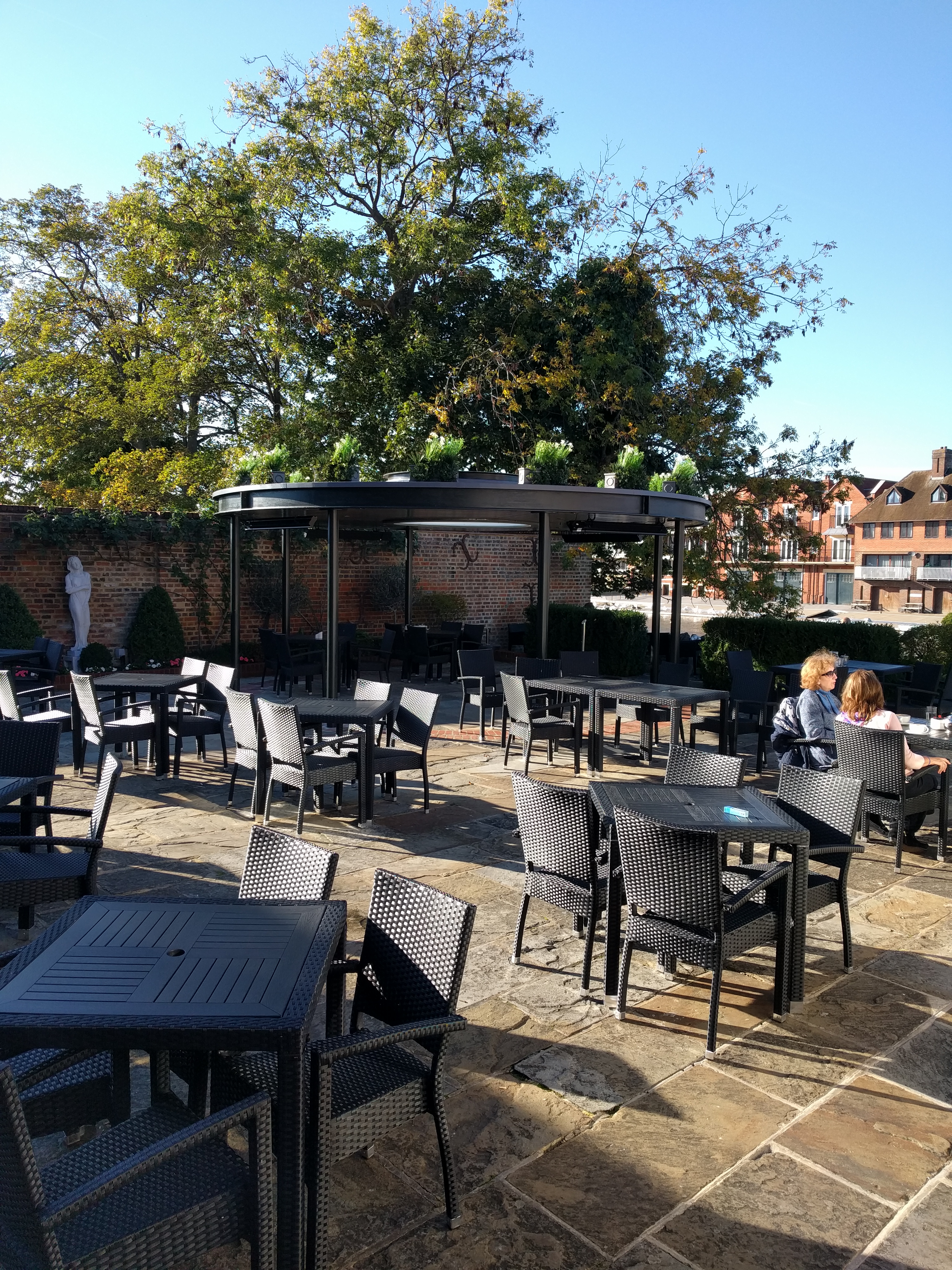 The large courtyard area with stunning river views that would be ideal in summer and a small more private area which had a beautiful, coloured glass light feature!