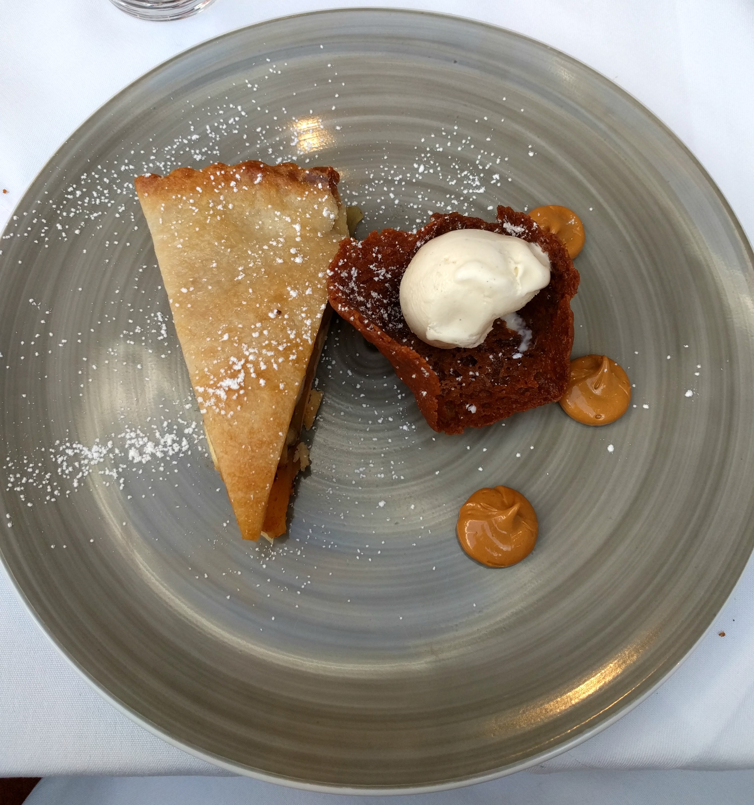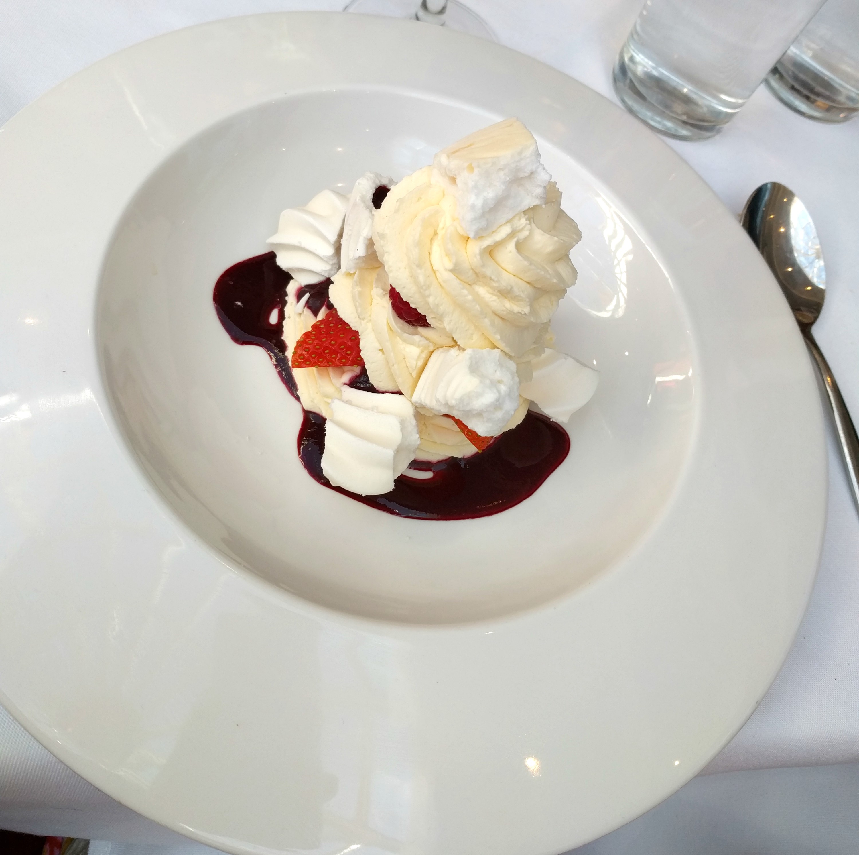 Desserts are ordered from a menu and I couldn't resist my all time favourite pudding, apple pie! This delicious version was served with a caramel sauce and a little tuille basket contained some vanilla ice-cream. They also served a classic berry 'Eton mess', I mean how could they not when they are so close to Eton itself! However it was a little overloaded with cream and needed a bit more meringue for my taste.