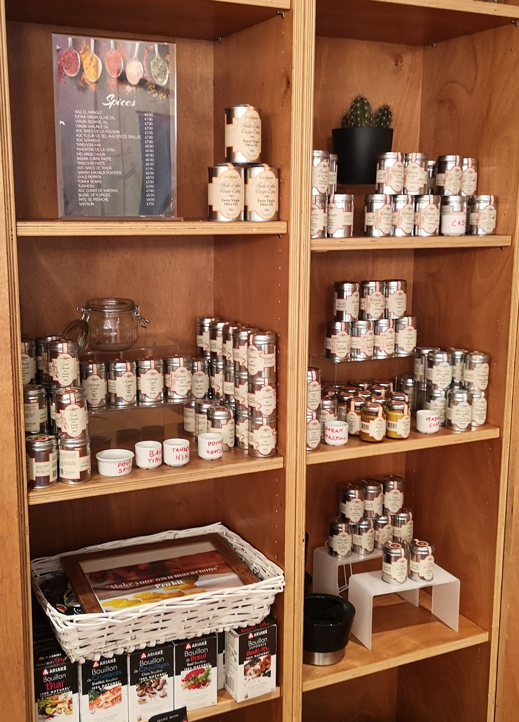 After a warm welcome, I had some time to browse the amazing shop before the class started! They have a fairly extensive range of cookware and equipment that after using it in a class you may want to purchase, as well an extensive range of ingredients! Look at all these spices!