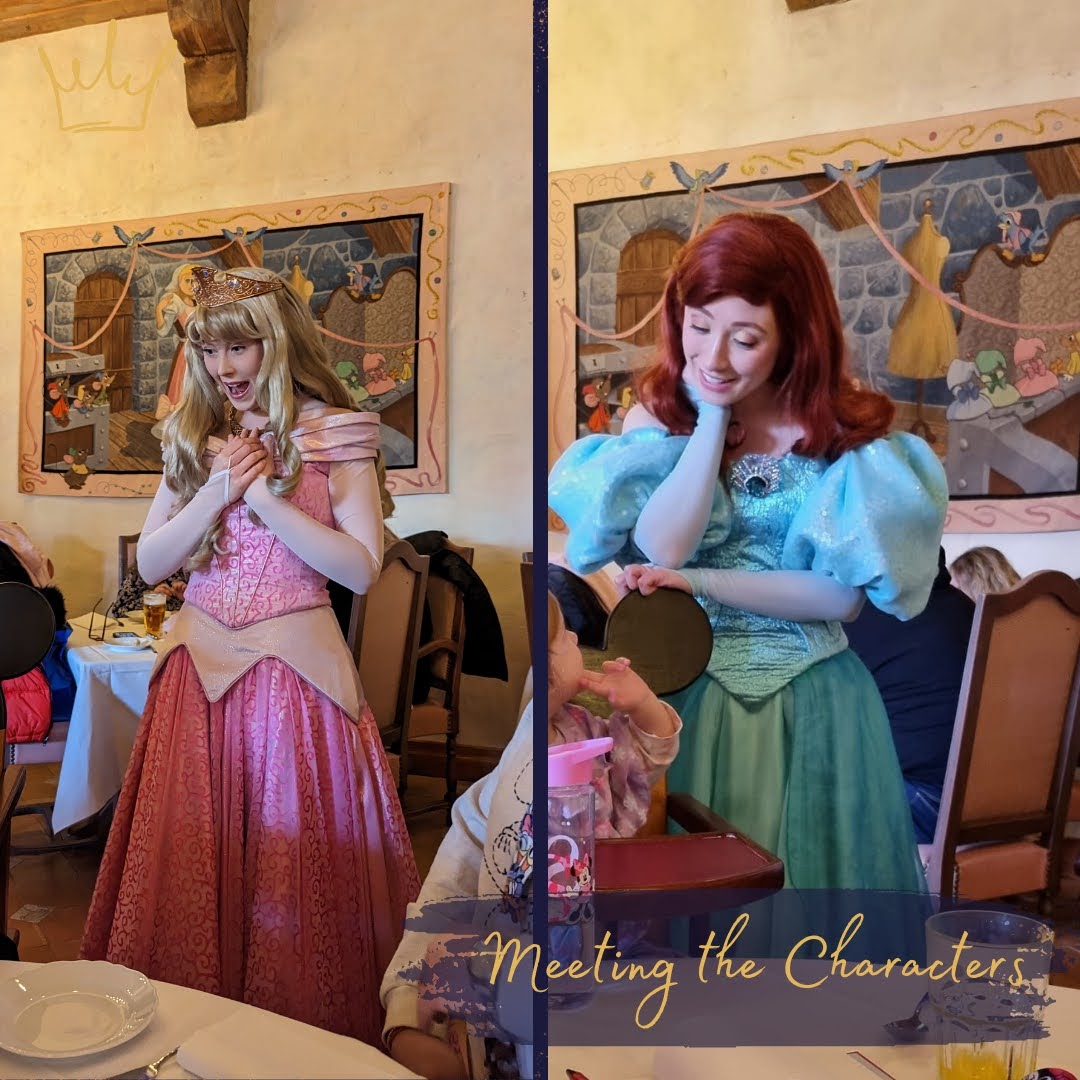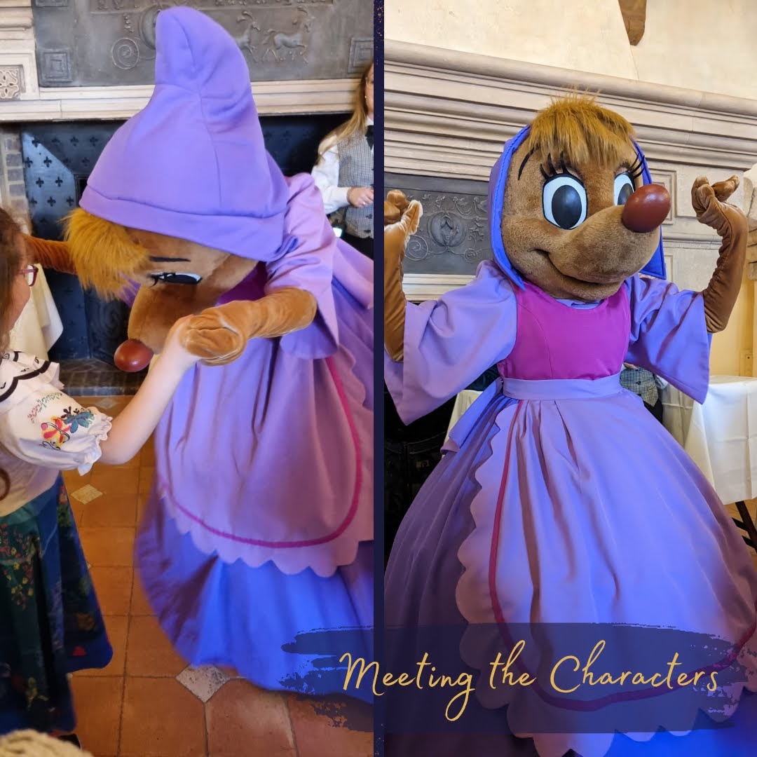 Apart from queuing at the Princess Pavillion (where times are often 2 hours +!), dining at Auberge is the only way to meet the princesses for photos and autographs. You are guaranteed to meet Suzy & Perla, Cinderella's mice friends who help her get ready for the ball and Cinderella herself, plus 3 other Disney Princesses. These do change, so there isn't a guarantee of meeting yours or your child's favourite necessarily. On the day we visited we met Suzy, Perla, Cinderella, Snow White, Aurora and Ariel.