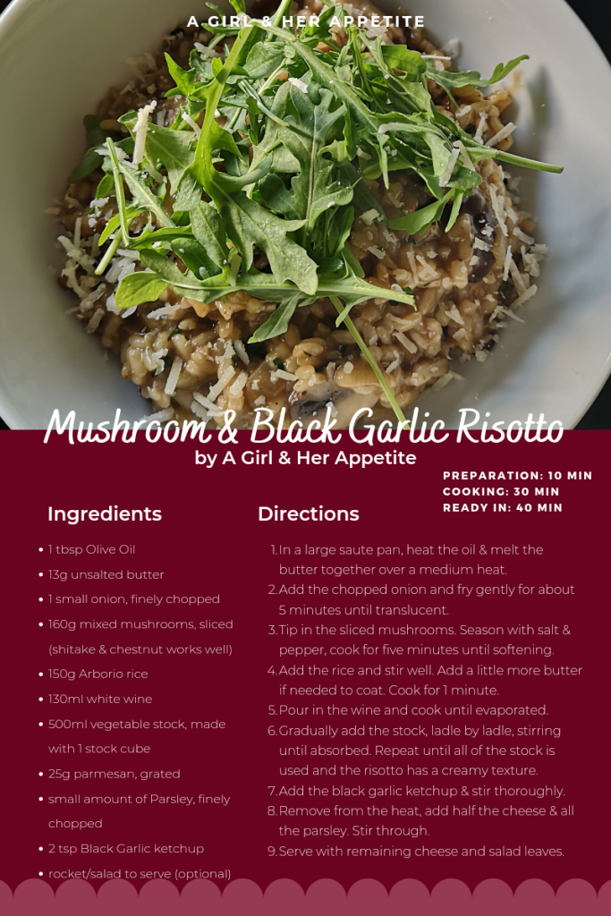 The perfect vegetarian comfort food! This Mushroom & Black garlic Risotto is deliciously rich in umami flavour!
