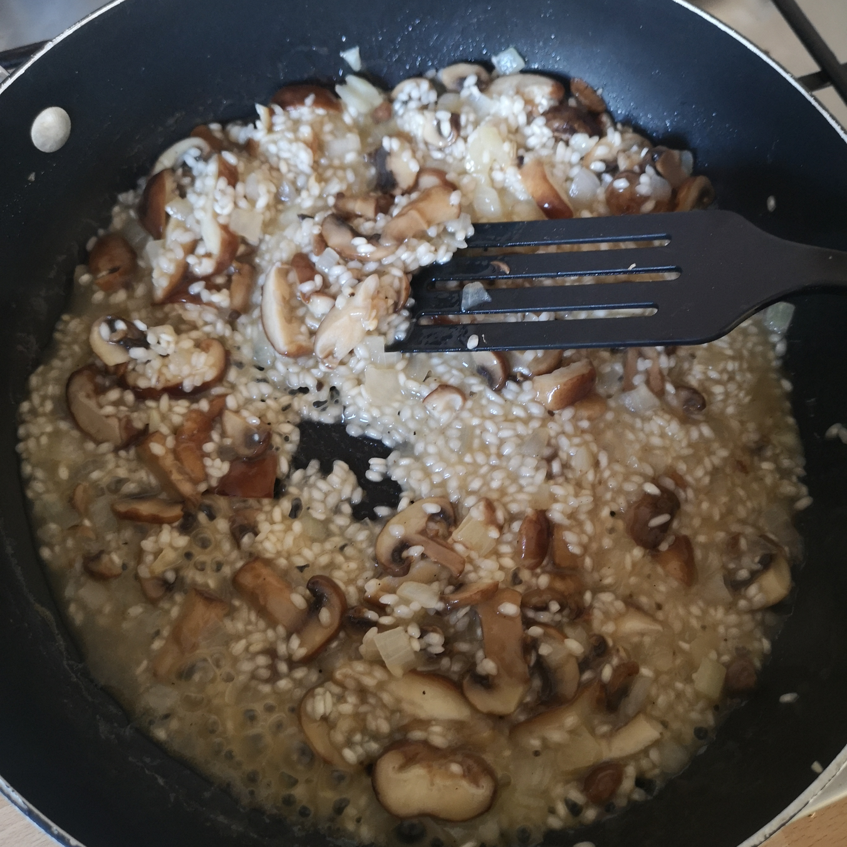 This is how I would normally cook a risotto, adding the garlic at the end instead of the beginning. This is because I didn't want to burn the ketchup and wanted to infuse it gently at the end.