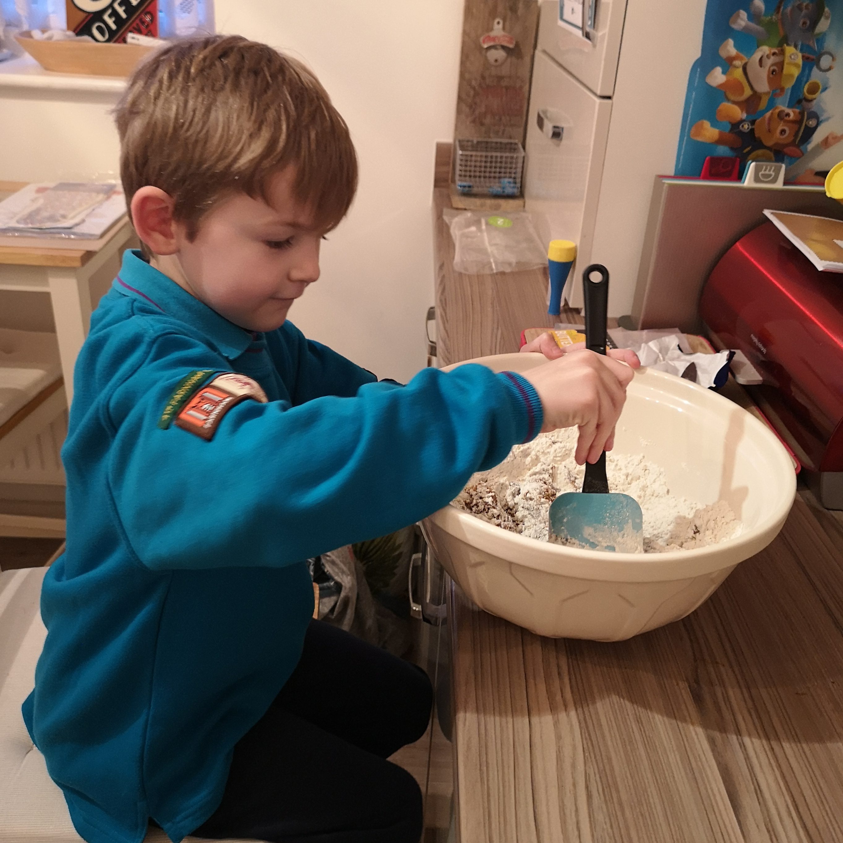 The first step was to melt the sugar (pack 1) with the butter required in a pan, obviously be careful with younger children as this will get very hot. Once this had cooled so you can handle it safely, you add in the flour mix (pack 2) and bring it together to make a very quick gingerbread dough. Super simple!